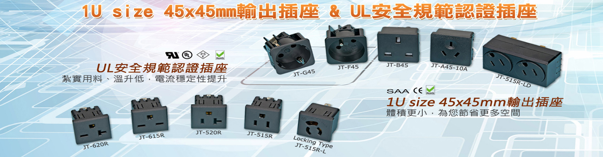 佛山市杰泰電器有限公司創辦于2008年,坐落于廣東佛山南海。杰泰電器是一家專業從事生產、貿易、銷售世界通用高質量、插頭插座、轉換插頭、轉換插座等各種電子電器產品的高新企業。我們公司的宗旨是:為廣大用戶提供新穎、獨特、安全的電器配具和一流的售后服務。 主要產品有:多功能旅游轉換插頭、全球通用轉換插座、音響設備插頭、美式插頭、英式插頭、美式插座、歐式插座、丹麥插座、英式插座、發電機插頭插座、工業防水插頭插座等。產品已通過美國、加拿大、丹麥、瑞典、挪威、德國、芬蘭等歐美國家之安全認證標準。并根據歐盟環保認證標準確保生產出高質量的產品。產品適用于廠房機械建設、各種電源設備、UPS不間斷電源、車載電源、通信機柜、流水線輸送機、小型發電機、舞臺音響設備、燈具等電器設備。產品通過了:中國3C,歐州CE,VDE,TUV,美國ETL,UL,cUL,法國NF,加拿大CSA,英國BS,澳洲SAA 等安全認證。工廠通過了ISO9001:2000質量體系認證。 目前,世界經濟日益全球化,農業、工業、第三產業不斷開放發展,跨國貿易活動頻繁,電器市場不斷分細,迫切需要全球通用的插頭、插座,以方便平時的生產、生活、學習、工作的需求。我們率先順應了這一潮流,以無以倫比的精良設計與質量,開發出各種世界通用的插頭插座,獲得了萬千用戶的青睞。實現了真正意義上的全球通。 至此,我們公司不僅成為國內各大家電公司、工程技術及專業電器銷售商的忠實供貨商,而且我們的產品還遠銷歐洲、美洲、澳洲、中東、非洲、東南亞、日本、韓國、香港、臺灣等世界各地。我們長期以穩定的優質產品和優質的服務,受到客戶的一致好評和信賴。
